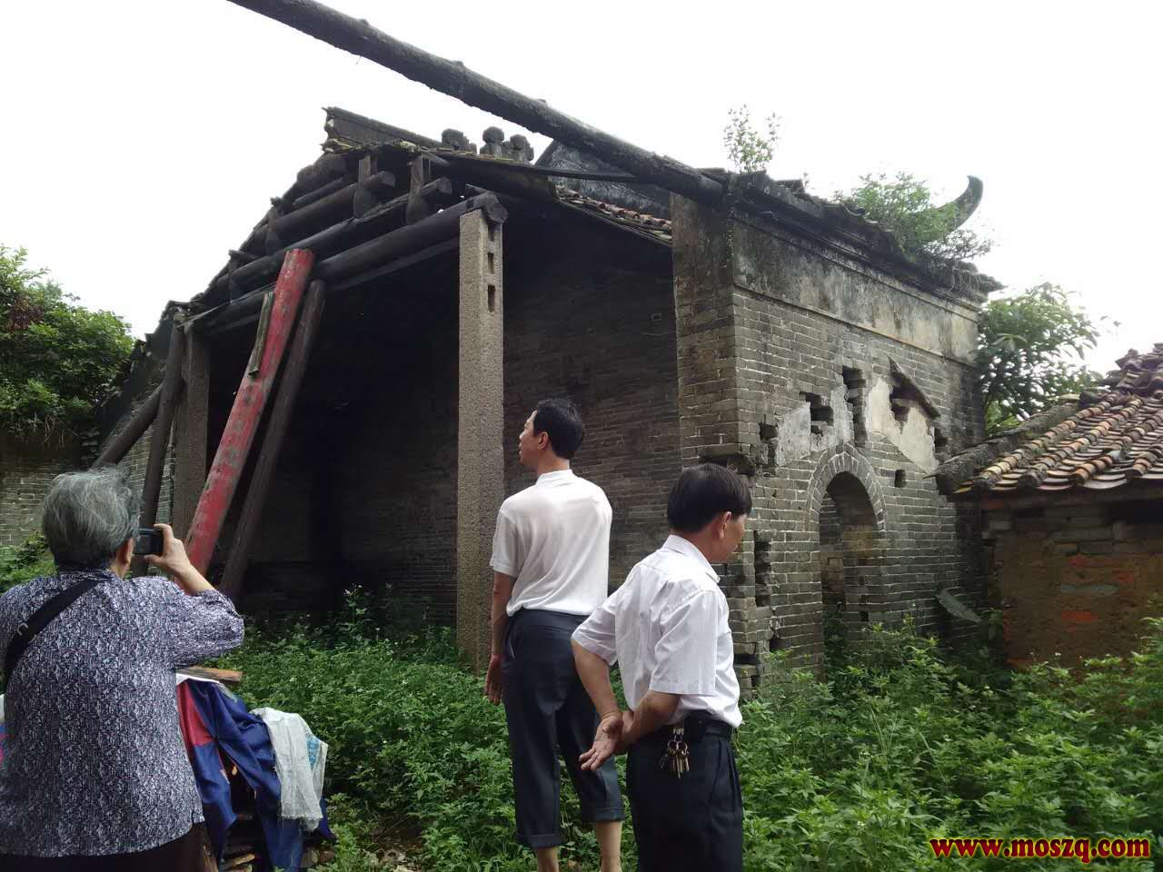 6,回到白沙村,为宗亲们亲切交谈,仰望着残墙断壁的二世祖元二祠堂,不禁唏嘘!
