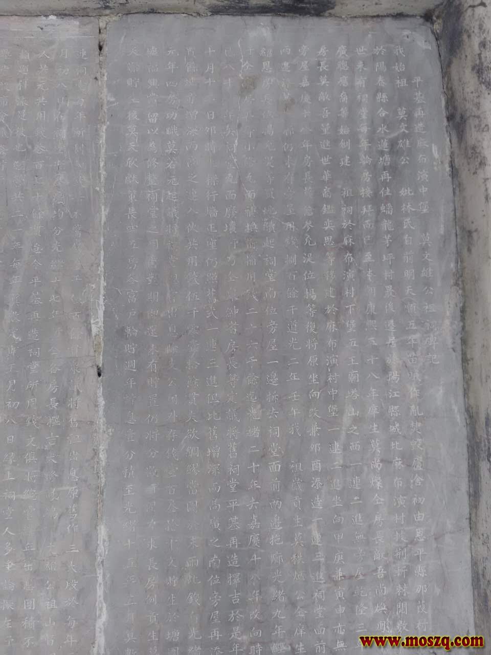 2,瞻仰麻演莫氏宗词,共三进,早三年修复。古迹夺目,其中立祠碑文刻着:始祖自明朝天顺五年(l461年),苖贼作乱,焚毁庐舍,由恩平县那西村迁于阳春合水莲塘,再住蟠龙茅坪村,最后迁居阳江城北麻布演时,披荆斩棘,数世未有祠堂,康熙五十八年(1719年)后裔始建祖祠。此石碑刻文,对莫氏历史研究很有邦助。